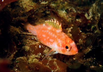 ホウボウの幼魚、ヒレナガカサゴの幼魚と成魚などが観察