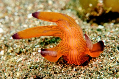 生物は、クチナシツノザヤウミウシ、カエルアンコウの幼魚、